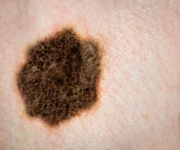 A melanoma can grow very quickly. It can become life-threatening in as little as six weeks and, if untreated, it can spread to other parts of the body. It can appear on skin not normally exposed to the sun. It is usually flat with an uneven smudgy outline.